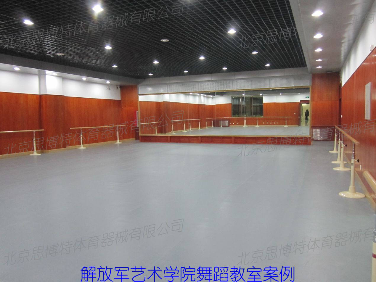 北京思博特體育器械有限公司承接北京百匯演藝學校新建教學樓20個舞蹈教室4500平米把桿及地膠工作